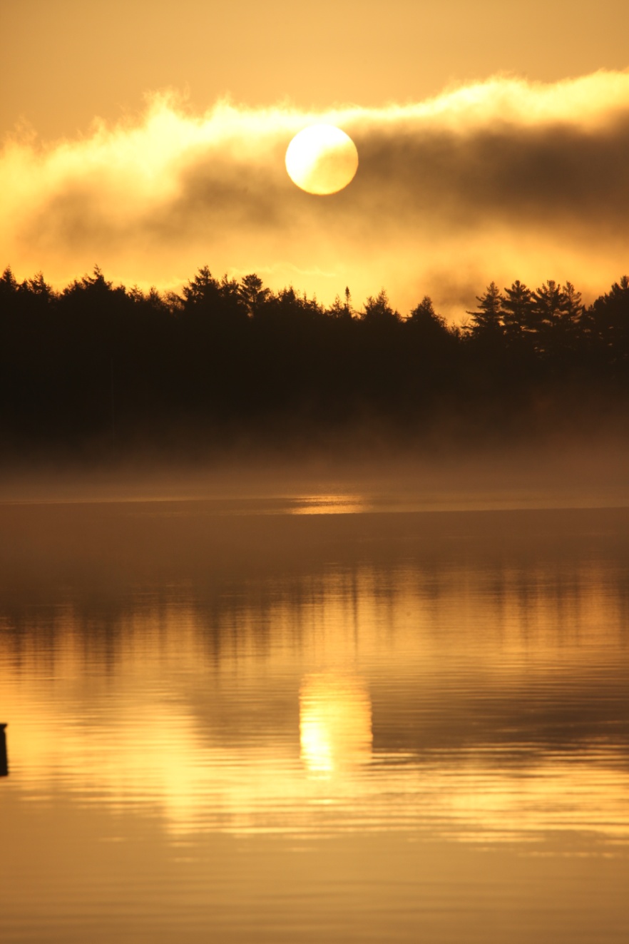 清晨,仍是湖边,仍是茵兰淡粉的湖面。光明徐徐从对岸的丛林升起,阳光刺眼。
