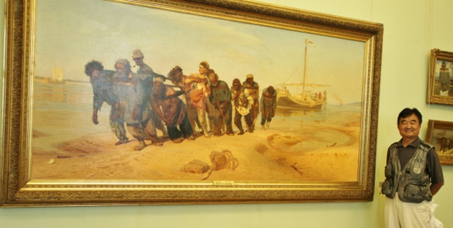 当然最熟悉得是《伏尔加河上的纤夫》,这是我们那代和上一代美术家的偶像。事实上,在50年前,我就在画报上看过她。后来文革插队,经常唱《伏尔加船夫曲》,每当哼起那悲壮的前奏,眼前就是这幅画,今天真得来到她的身旁。