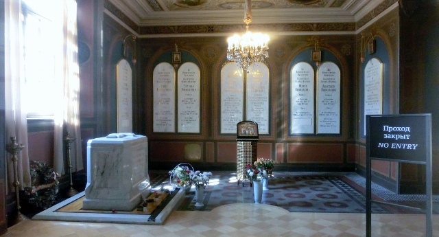 大教堂名气大,不仅建筑辉煌,装饰了得,更重要它是沙皇罗曼诺夫家族的寝陵,安葬着自彼得大帝到尼古拉二世几乎全部沙皇(共14个沙皇,只有彼得二世、伊凡六世例外)和部分皇家成员共36具棺椁。