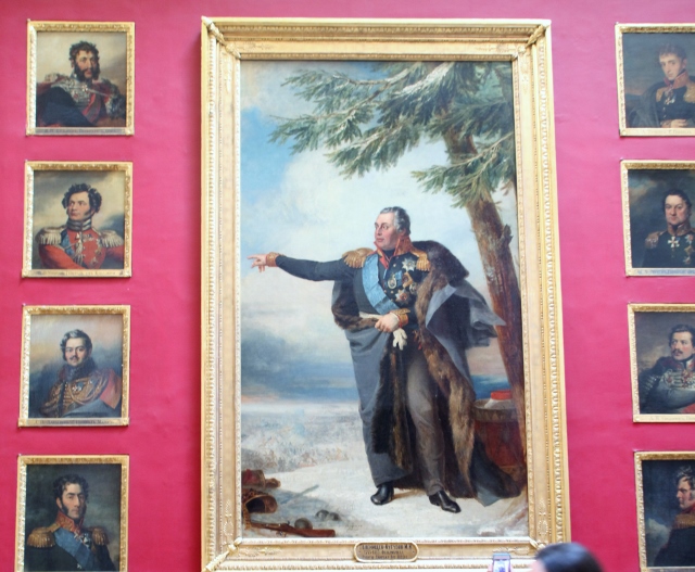 冬宫就是迷宫,不仅因为房子多,而且过于的金碧辉煌,不一会就看的人头晕脑胀。我虽然是第二次来,还是转了向。停在了战争走廊,没别的。这里满墙的肖像。