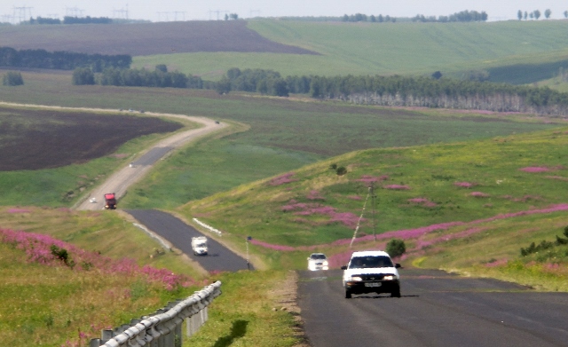 走出伊尔库茨克,行驶在低缓丘陵。坡下逶迤起伏的草原,坡上茂密的白桦树。继续前行,渐进农区,草场桦林间隔着玉米地。村镇渐多,人口渐密,时不时能遇见拖拉机、康拜因等大型农业机具。