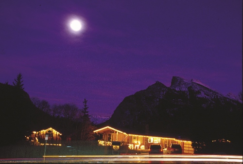 悬上商街的雪峰,被余晖浸染,一抹红晕。随着红晕的消褪,雪峰隐去光影,明月爬上枝头,松林衬出黑边,渗出漫天星斗。圣诞前夜的斑芙镇,彩灯照亮街面,红红火火。