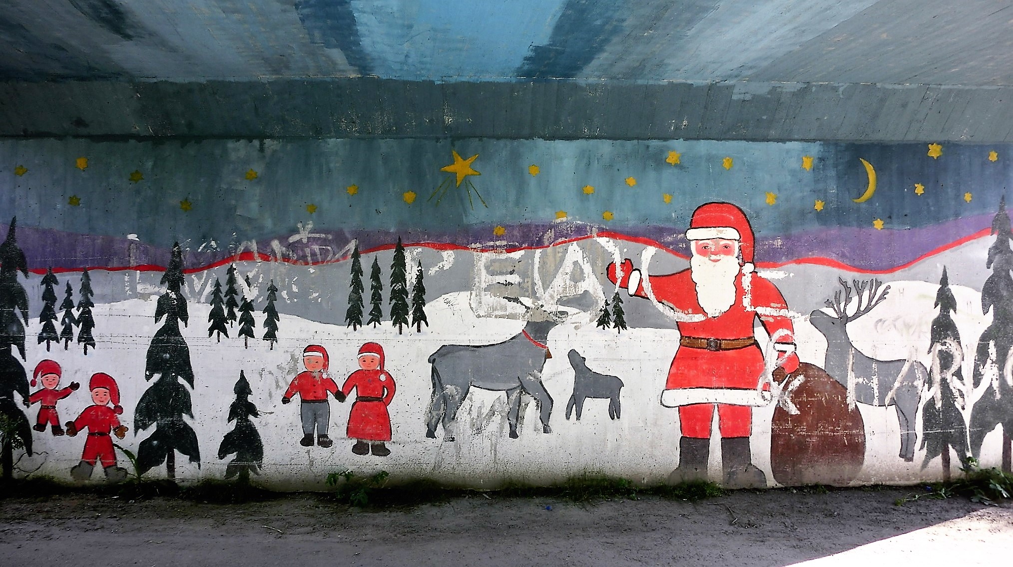 文化不仅在官方,也在民众。这是涵洞墙壁上的涂鸦,很有点水平。