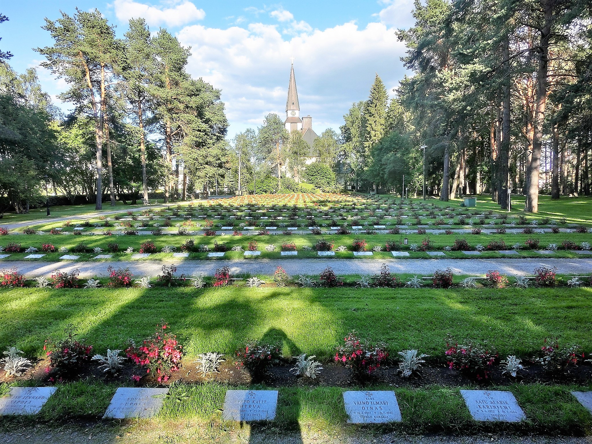 我不知芬兰人怎么阐述爱国主义?但从这陵园我知道:那些二战初期面对苏联的入侵,联合德国抗击苏军的芬兰战士和为了芬兰独立又联合苏军抗击德军的芬兰战士一样得到后人的尊重。我想起前天看到的那座刻着卍字符号的陵园。