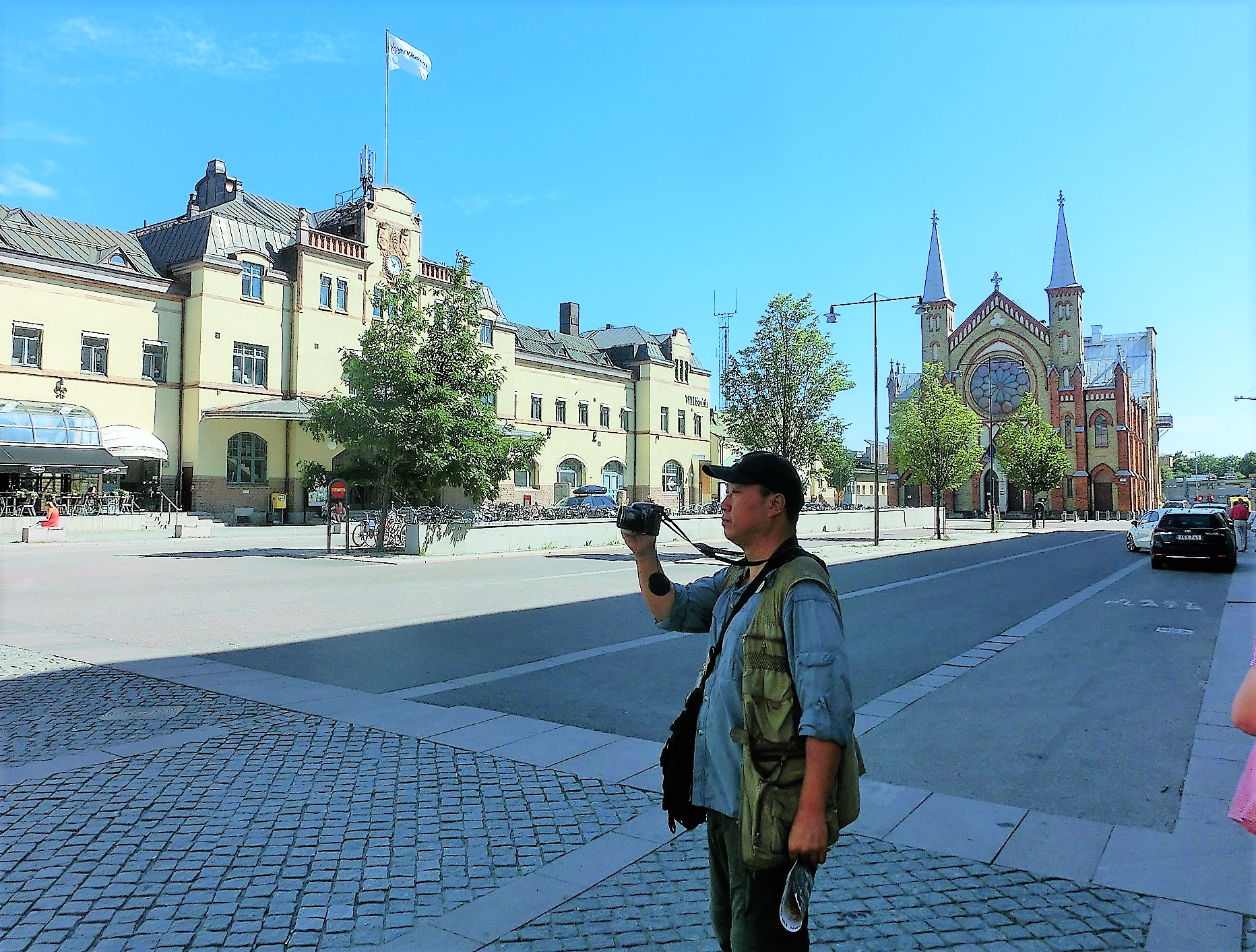 傍晚,走过大桥,对面一座教堂,福音派路德教区。